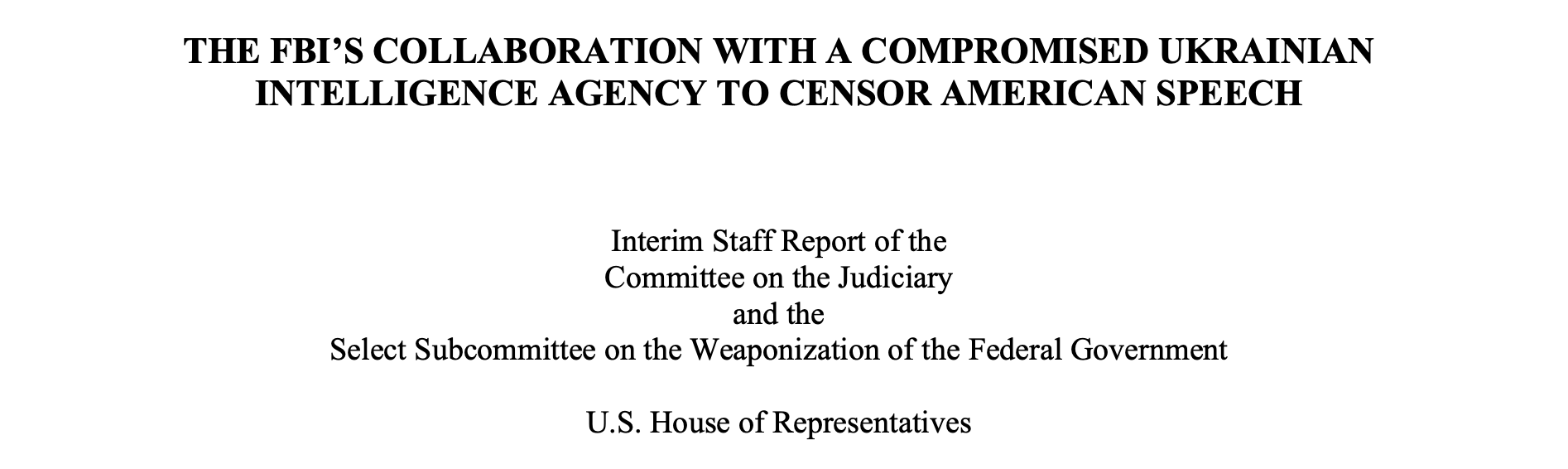> [Since February 2022,] the FBI, the federal law enforcement agency responsible for disrupting foreign malign influence, [instead] facilitated censorship requests to American social media companies on behalf of a Ukrainian intelligence agency infiltrated by Russian-aligned actors. In so doing, the FBI violated the First Amendment rights of Americans and potentially undermined our national security.