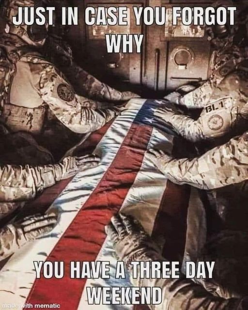 Memorial Day was established to honor our servicemen killed in the line of duty. It is a very solemn holiday but also a time for celebration of what they have done for us and what we have as a result- our freedom, our relative prosperity and opportunity. It is not likely we would still have that without a strong military.