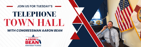 News from Representative Aaron Bean I am reaching out to let you know that my upcoming Telephone Town Hall has been moved to a new time due to unexpected votes in the House of Representatives. Previously scheduled for Tuesday, April 29 at 5:00pm, our town hall will now begin at 4:00pm. If you haven’t already there is still time to register. Sign up to receive the call HERE by 10:00am on Tuesday. Looking forward to connecting with you and our fellow Northeast Florida neighbors! Sincerely, Proudly Serving Florida’s Fourth Congressional District Contact MeWashington 2459 Rayburn Office Building Washington, DC 20515 Phone: (202) 225-0123Nassau 501 Centre Street, Suite 107 Fernandina Beach, FL 32034 Phone: (904) 557-9550Clay 4465-6 US Highway 17 Fleming Island, FL 32003 Phone: (904) 830-3933 Duval 117 W Duval St. #230 Jacksonville, FL 32202 |