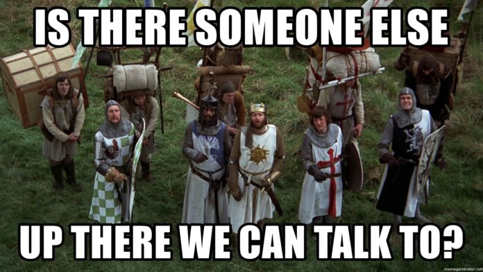 A scene in 1976 film “Monty Python and the Holy Grail” has King Arthur and his band of knights stumbling upon a castle manned by rude Frenchmen who hurl taunts at them.