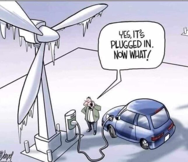 Their failed clanking windmills and worthless eye-sore solar farms have left them stranded on a dirt road with no relief anywhere in sight. The far left nitwits, whose brains are apparently as empty as their green energy promises and gas tanks, suddenly realize that they now need fossil fuels because their green energy fairy tale is just that …a fairy tale.
