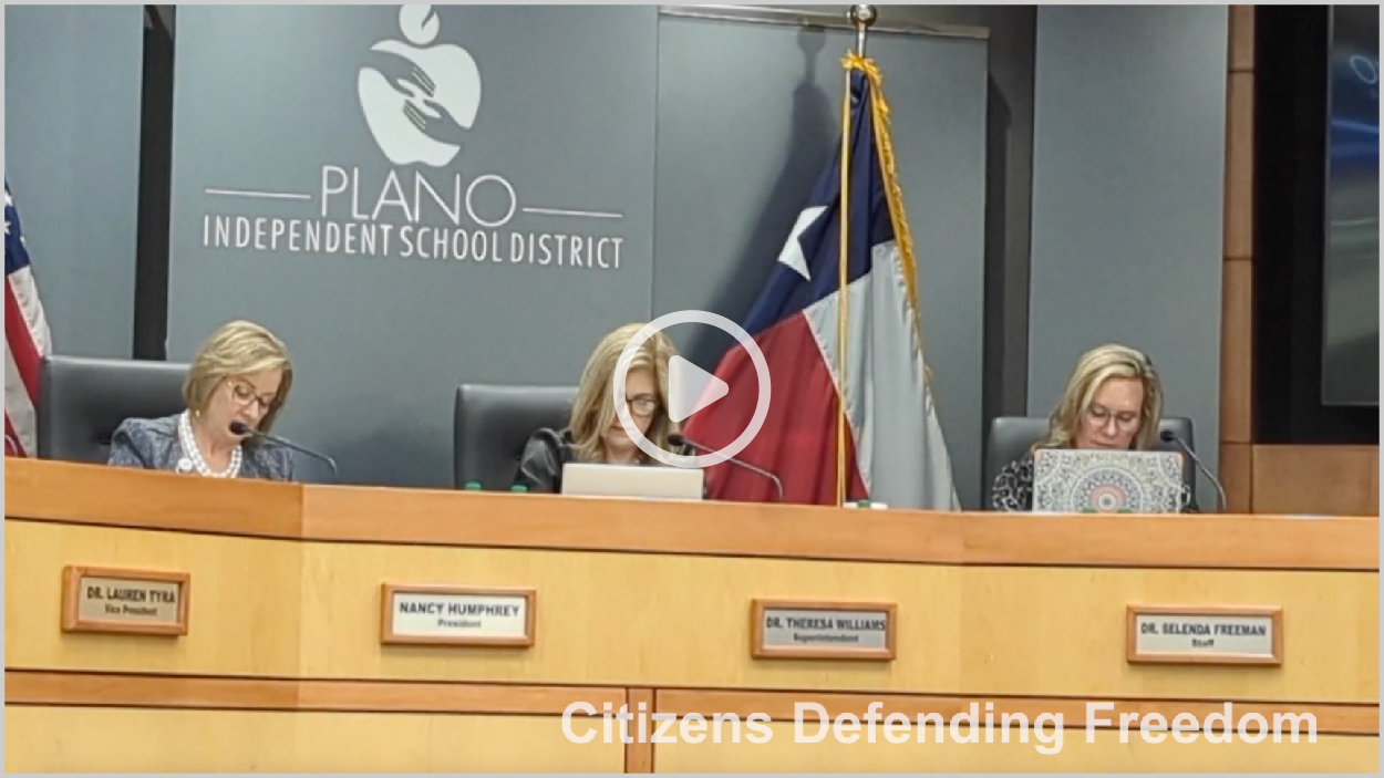Watch our viral video as the Plano Independent School District Board of Trustees IGNORES a Plano mother and CDF member who exposes the graphic content contained in one of the books.