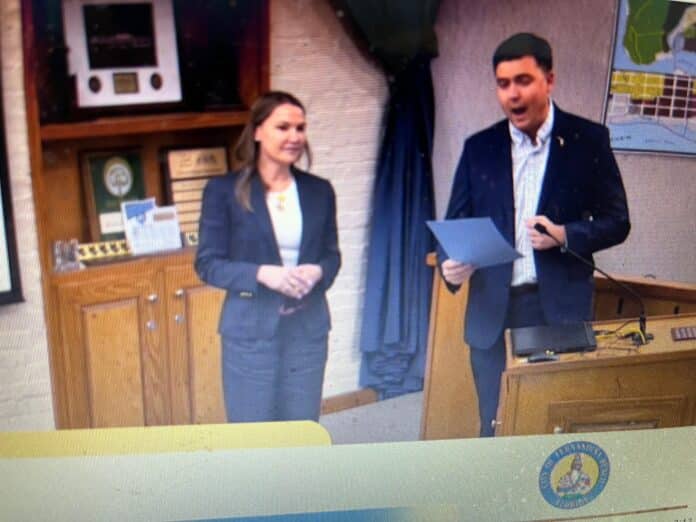 - Sierra Miller and Blake Labarbara sworn in as newly hired Police Officers by Police Chief Jeff Tambasco (photo below).