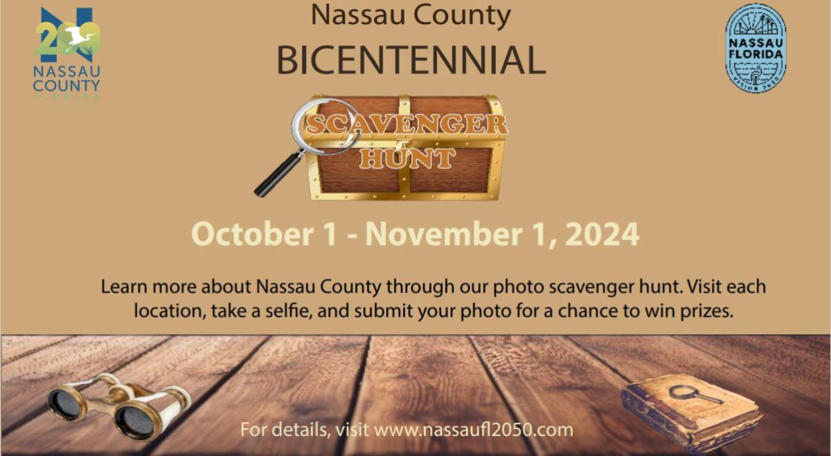 The Bicentennial Scavenger Hunt kicked off on October 1, 2024. This challenge runs through November 1, 2024 so it’s not too late to participate! This challenge is designed to teach you Nassau County’s history and encourage you to visit places you may have never seen or heard about.