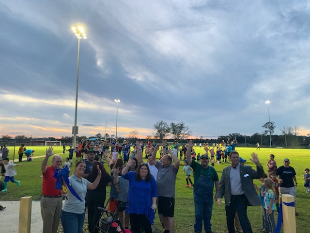 Representatives from the County and the Bryceville Sports Association gathered to celebrate the new playground equipment installed at the Bryceville Sports Complex.Representatives from the County and the Callahan Soccer Club gathered to celebrate the new lighting at the Callahan Sports Complex