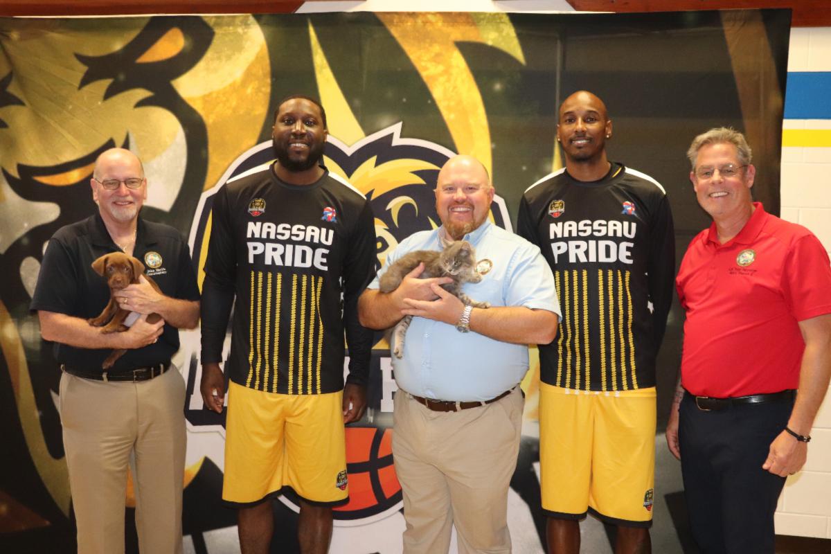 On Saturday, March 2, 2024, several members of the Nassau Pride professional basketball team joined us for a quick photo shoot before their final regular season game at home against the Columbus Skyhawks.  We appreciate them taking time out of their busy schedule to help us raise awareness for Nassau County Animal Services!