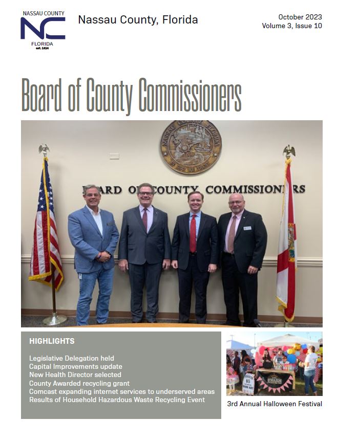 Linked here is the October 2023 edition of the Board of County Commissioner’s Newsletter. This monthly publication features a variety of information related to projects and activities for the departments under the Board. It also includes information about road projects, special events, adopted policies and procedures, budget discussions, and more!