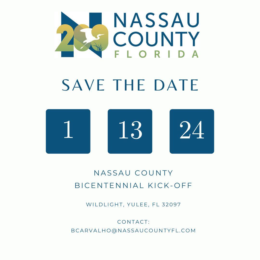 Save the DateBig news is coming! Save the Date for Nassau County’s Bicentennial Kick-off event. Details will be announced in December – but for now, mark your calendars for the first event celebrating Nassau County’s 200th birthday! You won’t want to miss it! |
