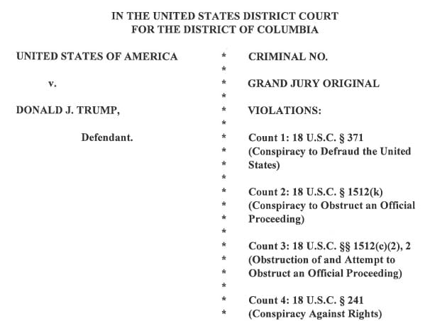 Smith charged Trump with four counts, including conspiracy to defraud, conspiracy to obstruct an official proceeding, obstruction of, and attempt to obstruct an official proceeding, and conspiracy against rights.