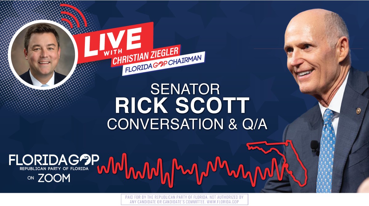 Florida Patriots – You are invited to join the FloridaGOP on ZOOM as I host a ‘Beyond the Stump’ Conversation with U.S. Senator Rick Scott THIS MONDAY – September 4, 2023 – at 8pm (Eastern). This hour long discussion will give the grassroots an opportunity to look past the talking points and get to know the man who is representing us in the U.S. Senate. During this ZOOM session, we will be bringing people LIVE to ask questions and speak directly with Senator Scott, so make sure to bring your:FeedbackIdeasQuestionsCLICK HERE TO RSVP I hope to see you on the ‘Beyond The Stump’ ZOOM on MONDAY! -Christian Ziegler FloridaGOP Chairman |